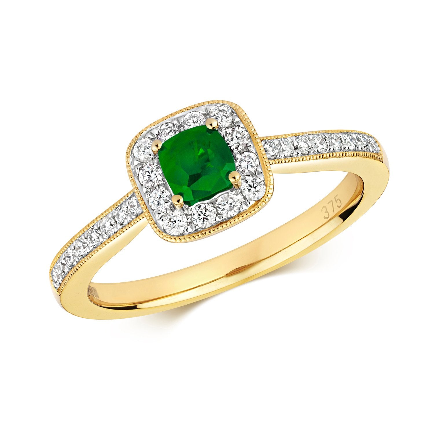 9ct Yellow Gold Lab Grown Emerald & Diamond Ring (R822em)