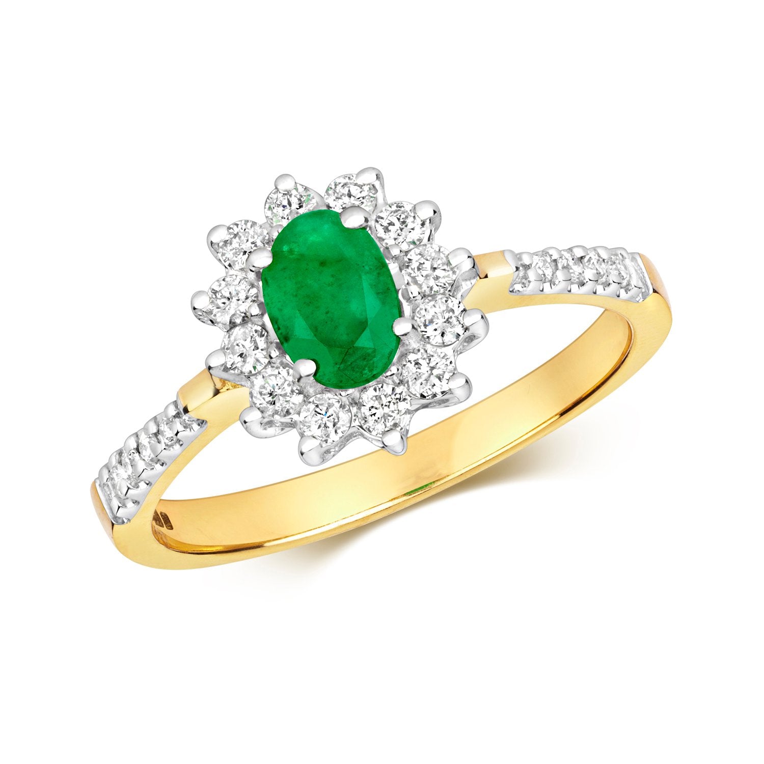 Oval Emerald & Diamond Cluster Ring (RE11814DA)