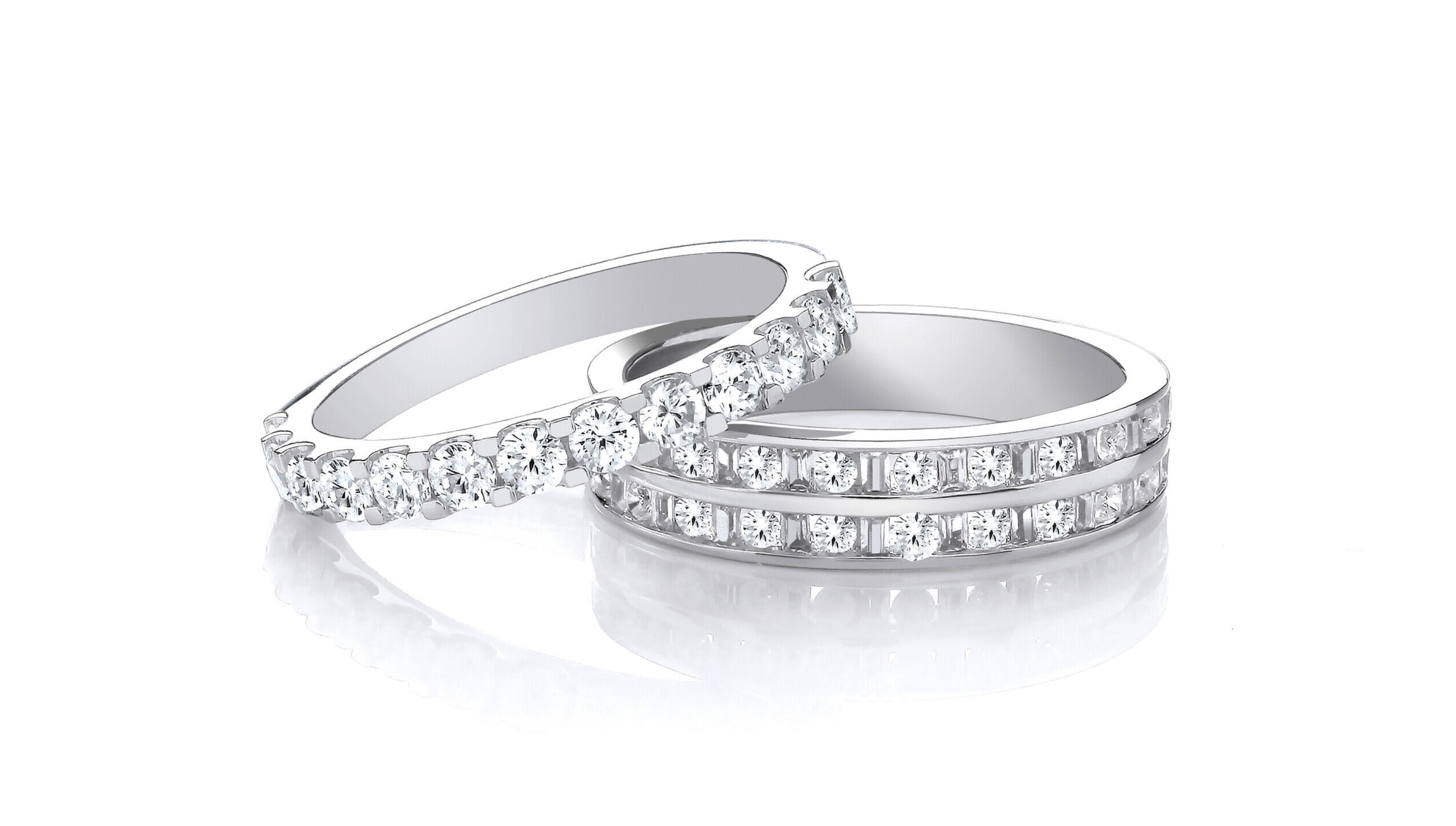 9ct White Gold Two Row Diamond 5mm Wedding Ring (Am0646)